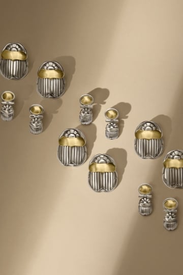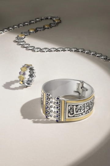 Handcrafted jewelry from Azza Fahmy draws on Egyptian artistry, combining silver, gold, and poetic calligraphy for distinctive, elegant pieces.